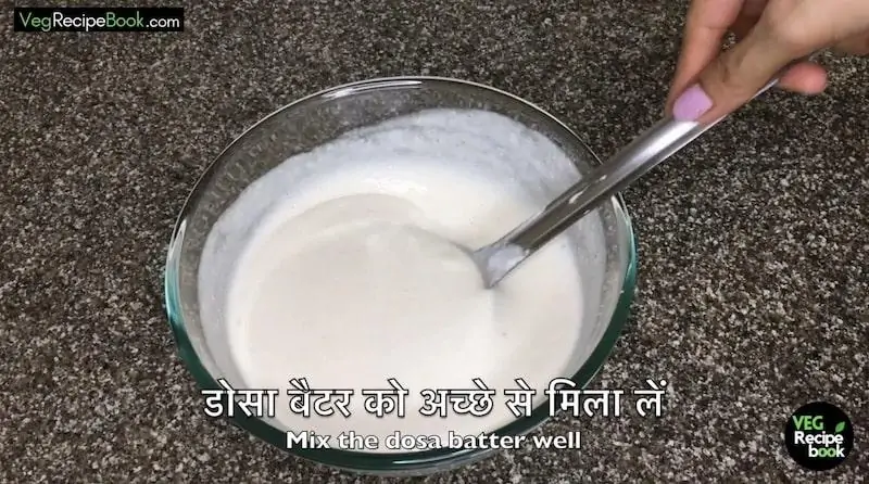 - Additionally, add 1 tsp of salt into the dosa batter and mix well.