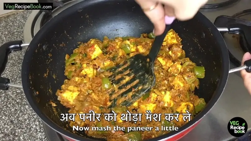- After that, mash the paneer with a spatula and mix it well.